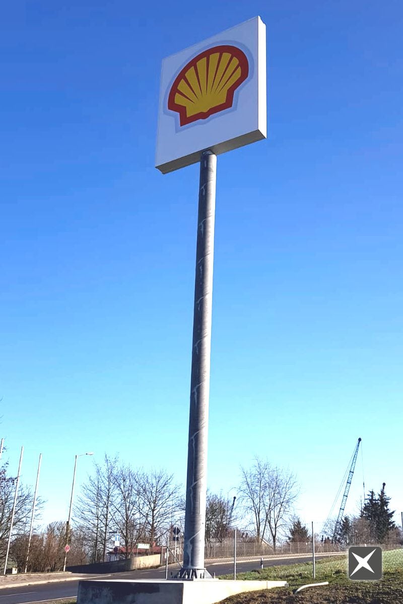 Werbeaufsatz Shell doppelseitig, je Seite ca. 3,5×4,1m groß
